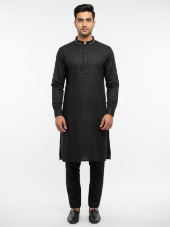 Mens plain Kurta Shalwar with piping detailing around neck and front